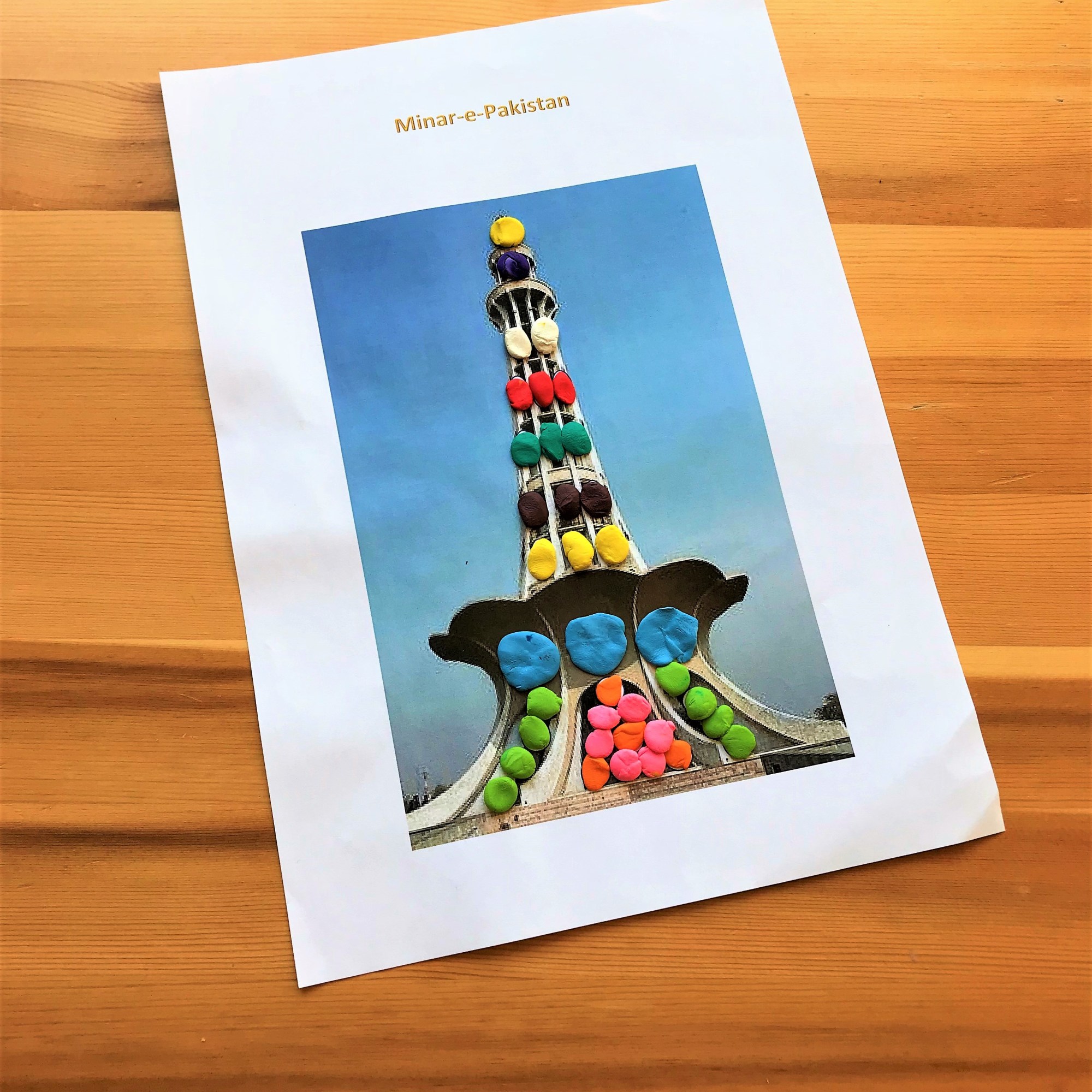 I wanted to show you today a famous art activity for kids, but this time with Pakistani touch. You can find a lot of pictures in internet ready to print, where you can use modelling clay on it. This is a good activity for kids, which gives a lot of fun and satisfaction. It is not only because of creating a colourful picture but most of all because of playing with modelling clay itself. Of course, we try to connect fun with learning something about Pakistan.