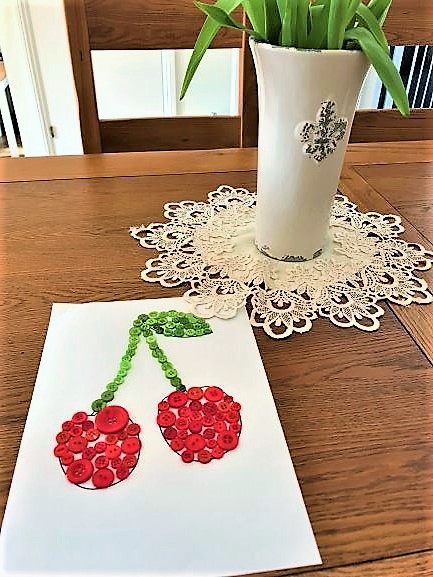 Dzisiaj po raz kolejny robiliśmy wyklejanki, tym razem były to obrazy z guzików. Przyznam, że tego typu prace, które widziałam zrobiły na mnie bardzo pozytywne wrażenie ze względów estetycznych. Uznałam, że nawet z maluszkiem można stworzyć coś naprawdę przyjemnego dla oka. Oczywiście w tym przypadku, trzeba szczególnie pilnować, aby żaden z guzików nie zniknął w buzi dziecka. Mojemu synowi bardzo przypadła ta zabawa do gustu. Podobnie zresztą jak i poprzednie wyklejanki . Tematem były polskie owoce. Tutaj wybraliśmy wiśnię. Natomiast za charakterystyczny dla Pakistanu uznaliśmy smaczny i soczysty arbuz 🙂