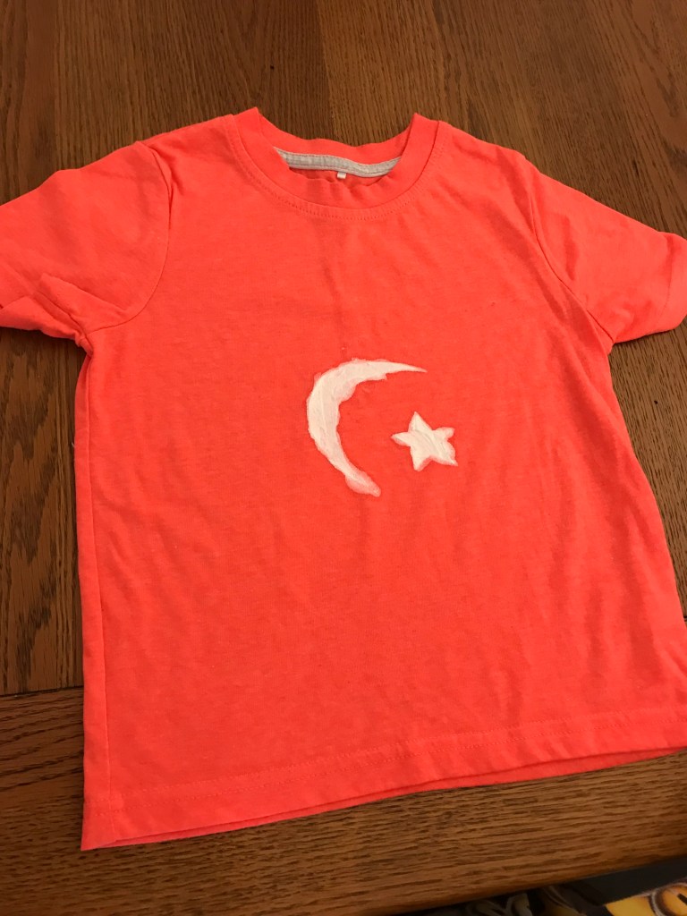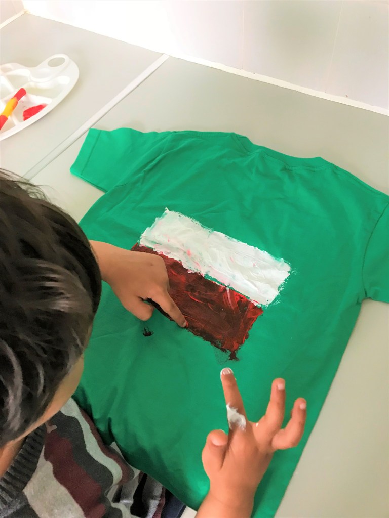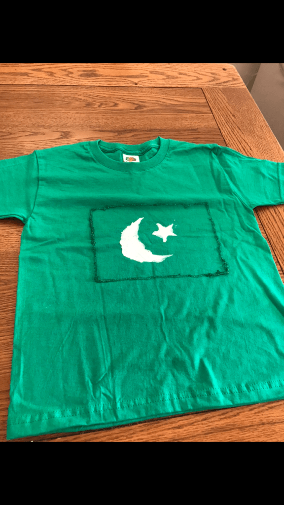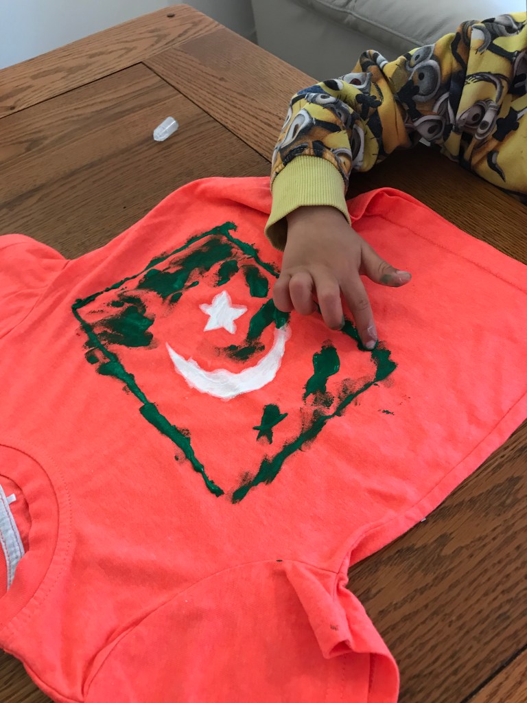 Painting the T-shirt is one of this activities that will that will let you enjoy the result for longer. It is the most important that you can wear it for example during a sport event to support your national team. It is very easy to make it. You need only a plain T-shirt and fabric paint. To create a Pakistani flag I used a draft of a flag to paint moon and a star. For the rest I used my handwriting.